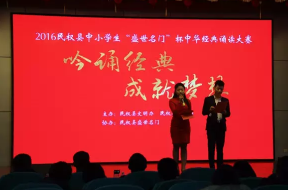 2016年12月23日,由(you)盛(sheng)世名門和民權縣教體局(ju)承辦的“吟誦經典,成就夢想(xiang)”2016中(zhong)小學(xue)生中(zhong)華(hua)經典誦讀(du)大賽(sai)在民權縣實(shi)驗小學(xue)多媒體會(hui)議室隆(long)重(zhong)舉(ju)行。