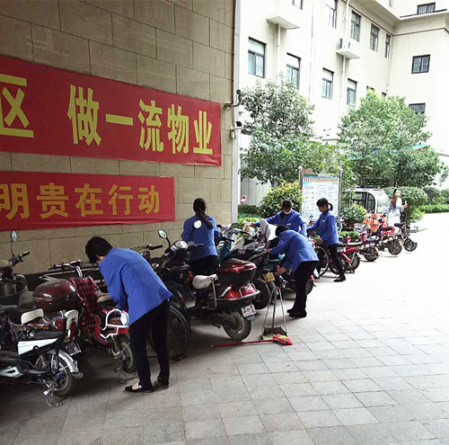 保潔大姐在為業主(zhu)們免(mian)費擦洗電動車