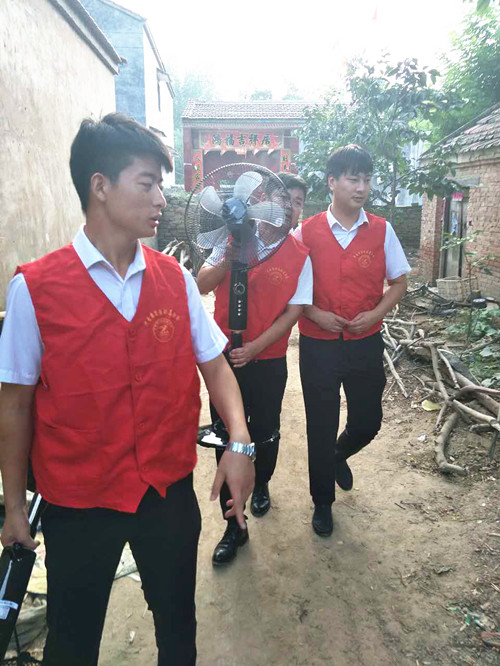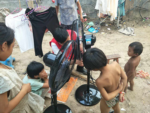 志(zhi)愿者現(xian)場為孩(hai)子們安裝風扇