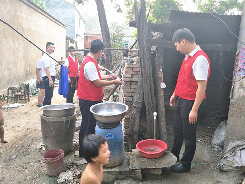 基金會志愿者(zhe)與施工方現場勘測(ce)危房(fang)