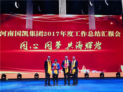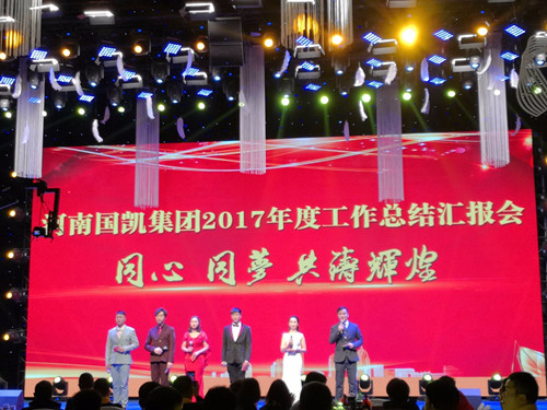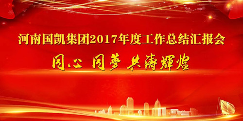 01月03日(ri),2017年河(he)南國凱集團(tuan)年度工作總結匯報(bao)會在永城漢(han)宮酒店隆(long)重舉行。本(ben)屆年會以“同(tong)心同(tong)夢(meng)共(gong)鑄輝煌”為主題,來自省內(nei)各地的(de)集團(tuan)領導、集團(tuan)員(yuan)工及特(te)邀嘉賓數百余(yu)人(ren)歡聚一堂,共(gong)襄盛舉。