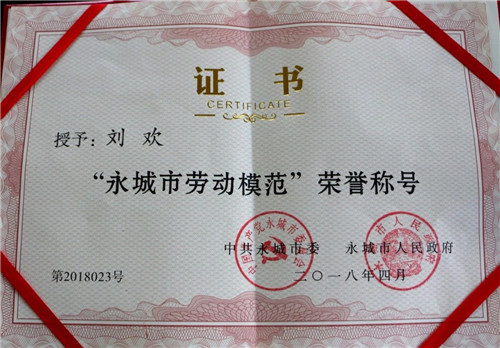 熱烈慶祝:蘭堡(bao)灣涂料科技有限(xian)公司總經理劉歡,榮獲“永城市(shi)勞(lao)動模范(fan)”榮譽稱號!