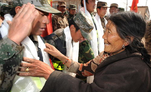 2008年5月18日,海軍陸戰隊官兵在轉移受(shou)災群眾