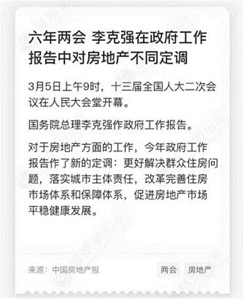 與往年相比,今年對(dui)于房地(di)產的(de)表述,置于“城鎮化”的(de)章(zhang)節(jie)中,不再單列,次數較(jiao)少,整體基調(diao)相對(dui)平穩。“沒(mei)有(you)強(qiang)(qiang)調(diao)控(kong)制(zhi)房價,沒(mei)強(qiang)(qiang)調(diao)“租(zu)售(shou)并舉”,這種(zhong)變化,釋放了哪(na)些(xie)信(xin)號?”